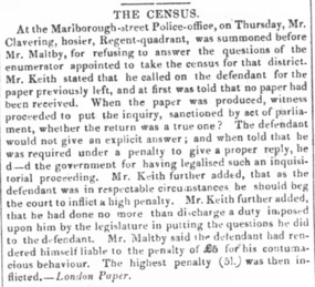 Was your ancestor fined after refusing to participate? Did your ancestor get counted amongst the poor by the police forces? It may very well be worth your time and I would encourage you to do a bit of digging in your area of interest and time frame to see what you can come up with. Just like today, the census has always been news-worthy.